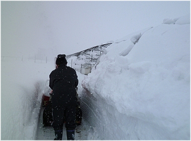 この写真はハウスのまわりなのですが、一面雪に覆われており、